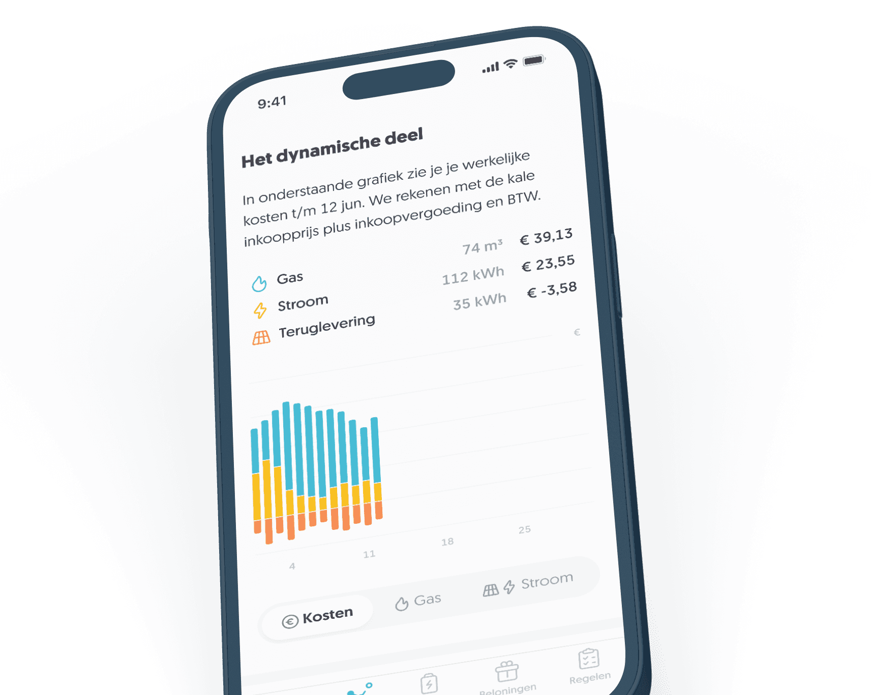 Bij een variabel contract kunnen we geen verbruik tonen in de app, immers je uiteindelijke prijs wordt gebaseerd op een standaard verbruiksprofiel. Dat betekent dat we de ontwikkeling van je kosten niet kunnen tonen.