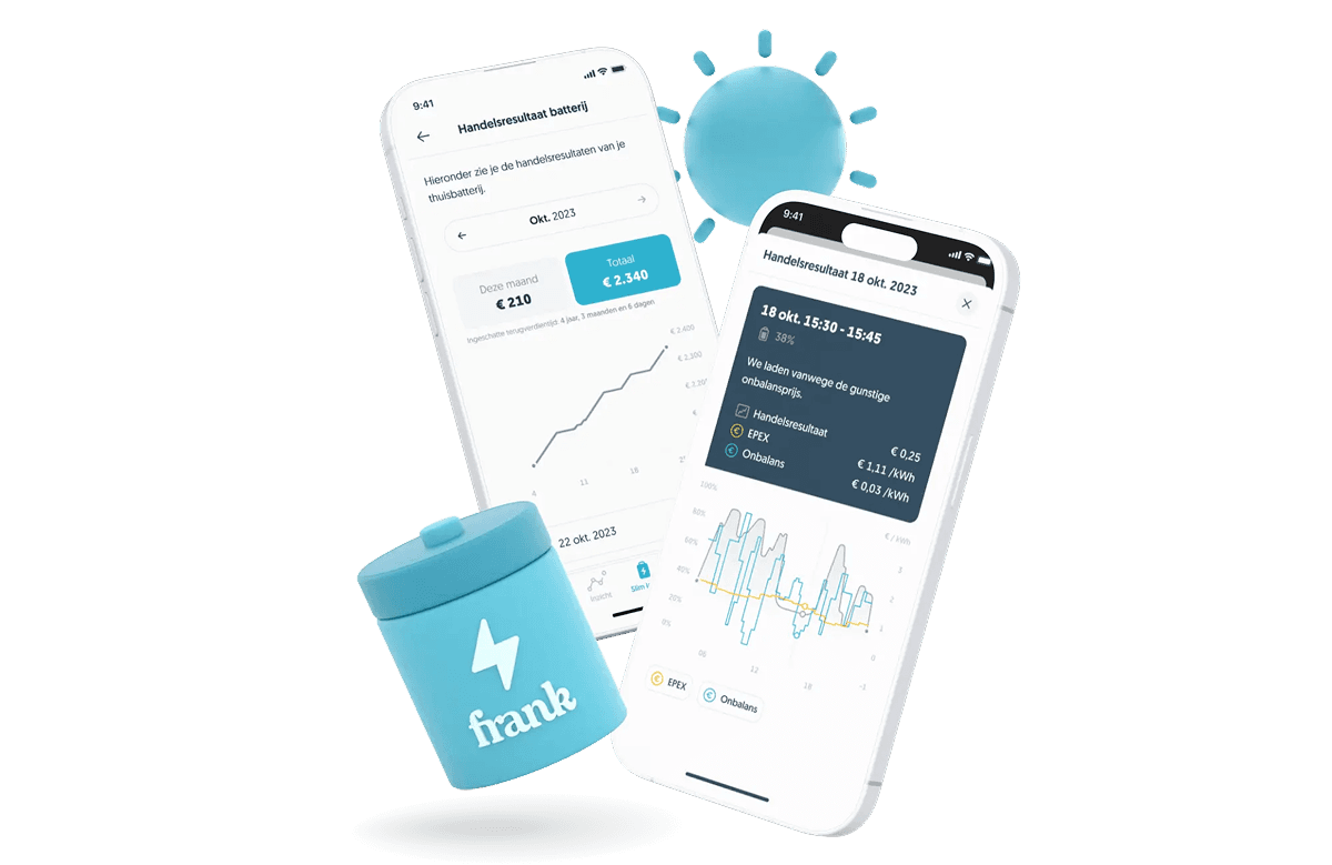 Frank Energie maakt zich sterk dat wie z’n thuisbatterij optimaliseert op zelfconsumptie, al een mooie opbrengst haalt. Wie daarbij ook nog slim handelt op de onbalansmarkt, haalt naar verwachting zo’n 50% éxtra profijt uit zijn batterij. Frank Energie optimaliseert sinds mei 2024 thuisbatterijen in Nederland en beheert inmiddels zo'n 32 MWh aan batterijcapaciteit. Dit heeft al geleid tot meer dan €700.000 aan uitbetaalde handelsresultaten voor klanten.
