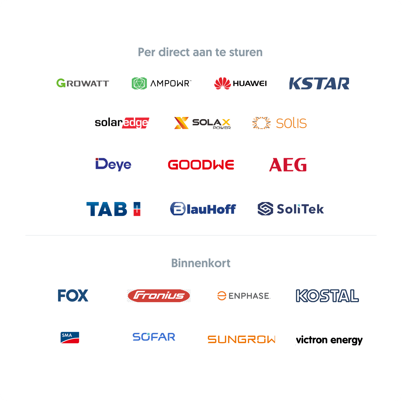 De Bliq energiemanager is compatible met vele merken thuisbatterijen, zodat je deze batterijen ook slim kan aansturen met onze Slim Handelen dienst.